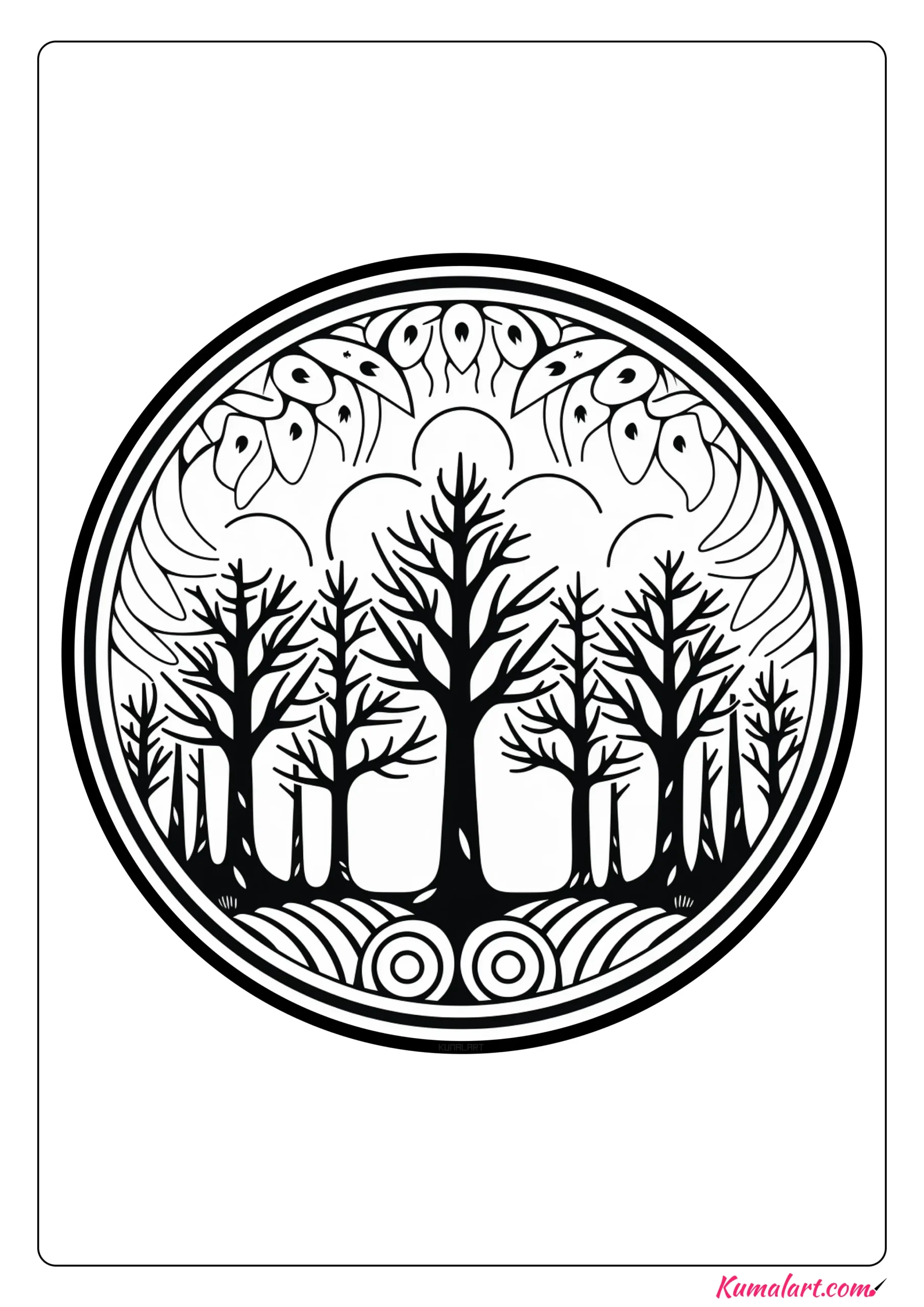 Lush Forest Mandala Coloring Page